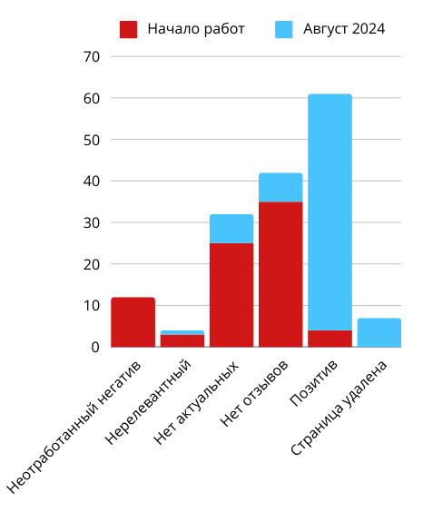 Площадки с неотработанным негативом, нейтральной тональностью и без отзывов полностью исчезли из топа выдачи Яндекса и Google.