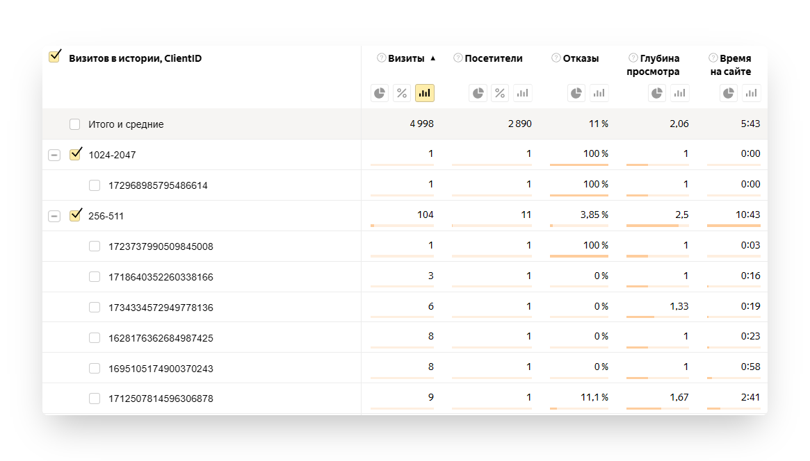 Обратите внимание, что данная стратегия может не сработать в тех тематиках, где требуется быстрое принятие решений (например, эвакуатор). В этом случае посетители принимают решение быстро, могут вести себя хаотично и нестандартно. Также не получится собрать фродовый трафик по ClientID, если бот или скликиватель меняют браузеры или его параметры — в этом случае идентификаторы будут разными.