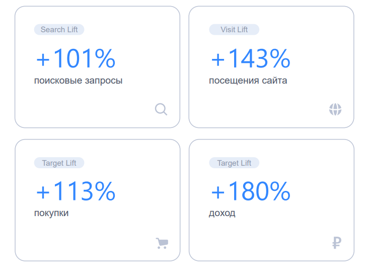 3. Прирост поисковых запросов, визитов и целевых действий по сравнению с группой пользователей, которые не видели рекламу.