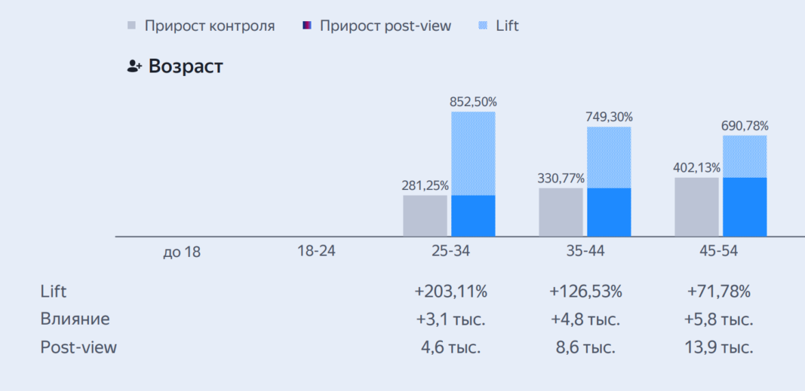 4. Прирост визитов не только среди посетителей целевого возраста, но и среди более молодой аудитории.
