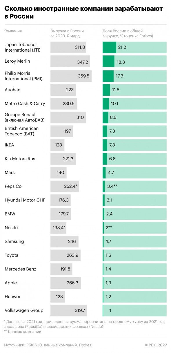 Coca-Cola и PepsiCo ограничат поставки и свернут рекламную деятельность, Mars приостановит импорт и экспорт продукции. Unilever приостановит экспорт, поставки товаров, произведенных в России, будут продолжаться внутри страны. Третий по величине производитель пива Carlsberg приостановит экспорт и рекламу. Это означает, что поставки многих торговых марок продолжатся, но, во-первых, их будет меньше, а, во-вторых, будут проблемы с логистикой.