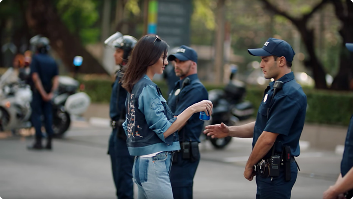 Так, Pepsi попытался встроиться в протестную повестку с роликом, где американская модель Кендалл Дженнер «улаживает» конфликт между протестующими и полицией, просто вручая офицеру банку Pepsi.