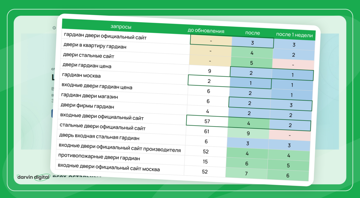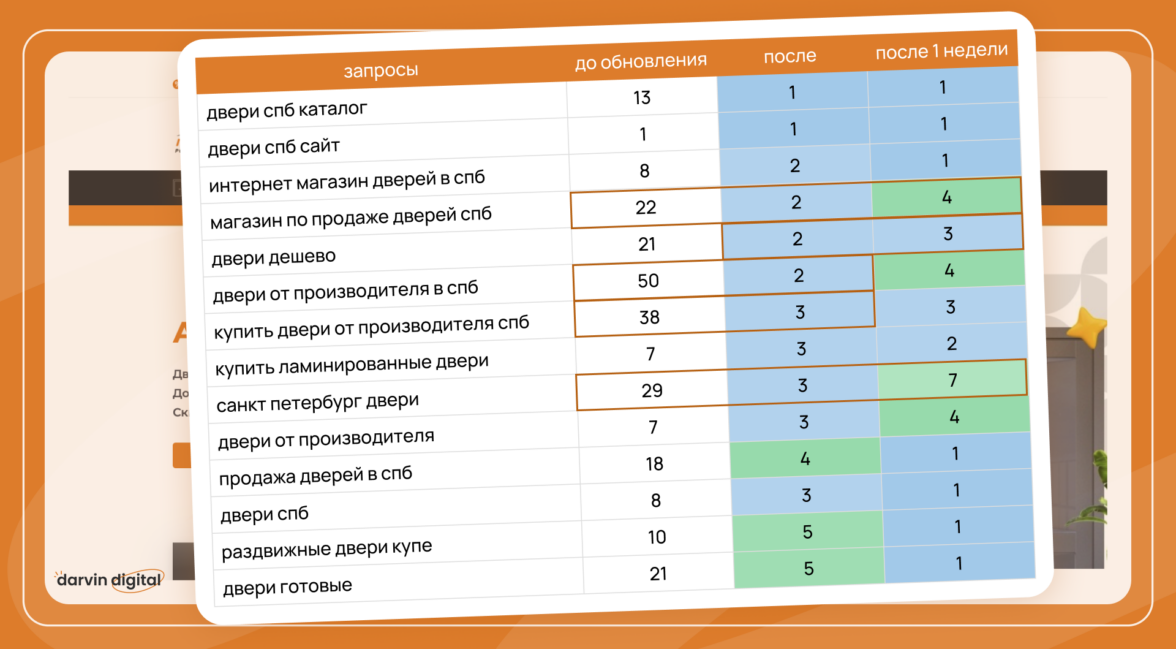 Сразу после апдейта сайт дилера завода входных и межкомнатных дверей показал рост по высокочастотным брендовым фразам: