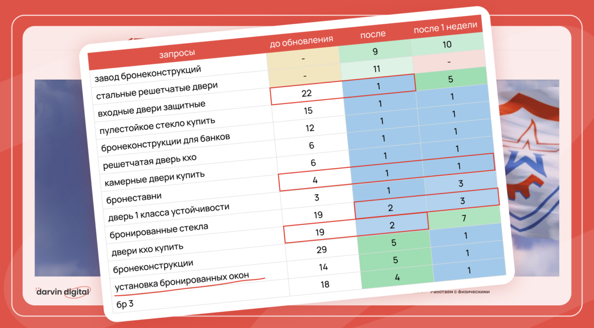 Новые запросы, например, «установка бронированных окон»— вошли в ТОП-5.