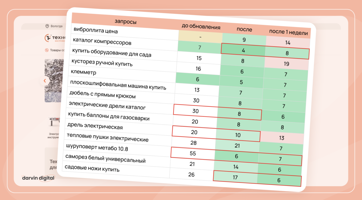 Сразу после обновления сайт интернет-магазина техники показал скачок по ряду запросов: