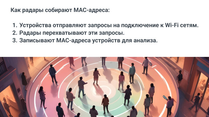 Wi-Fi «радары» записывают MAC-адреса всех устройств, отправляющих запросы на подключение, сохраняя данные для анализа и использования.