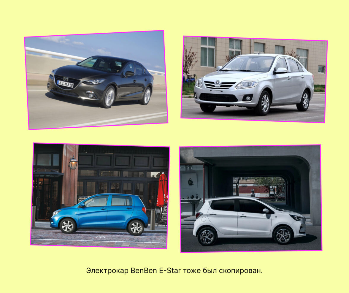 Но компания по старой памяти всё-таки продолжает иногда копировать чужие авто. Даже для своей самой первой машины, Ben Ben, они сильно не заморачивались и взяли за основу начинку Suzuki Alto.