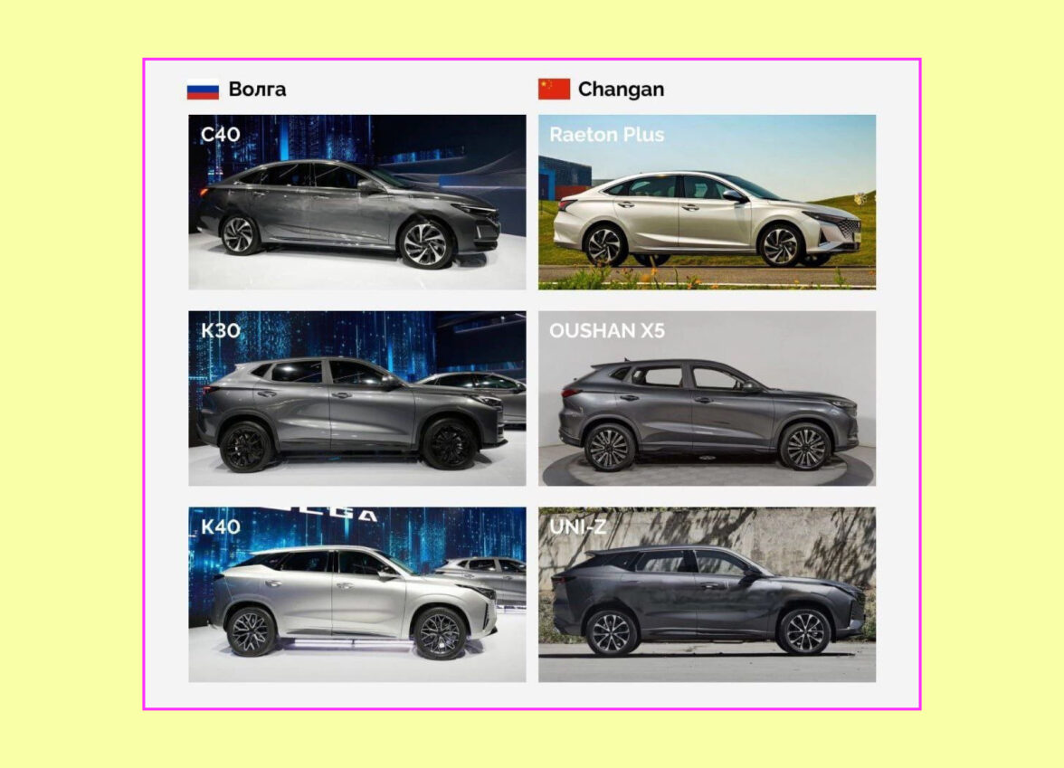 Вот только никакого сходства с легендарной «Волгой» у этих машин нет. Это копии машин от Changan, пусть и с небольшими отличиями — логотип «Волги» и её фирменный рисунок решётки радиатора.