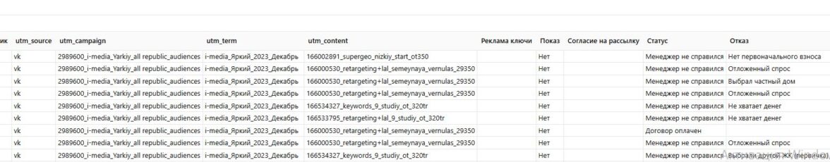 Вместо пассивного ожидания мы использовали паузу в активности рынка для глубокого анализа предыдущих кампаний. Тогда клиент подключил инструменты сквозной аналитики. Через связку Calltouch и AmoCRM удалось проанализировать путь пользователя от первого касания до сделки, включая поведение внутри воронки: какие объявления привели к заявке, какие заявки прошли квалификацию, какие сделки были закрыты.