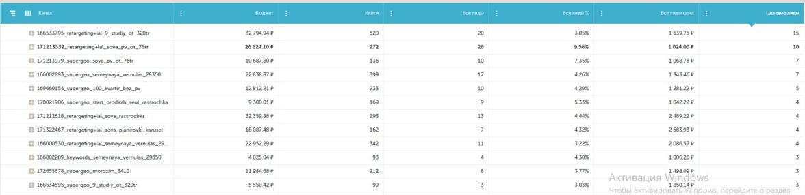 Из VK пришло 258 целевых лидов. Это составило около 14% от общего объема лидов с paid-трафика;