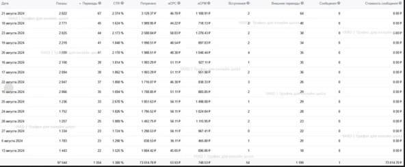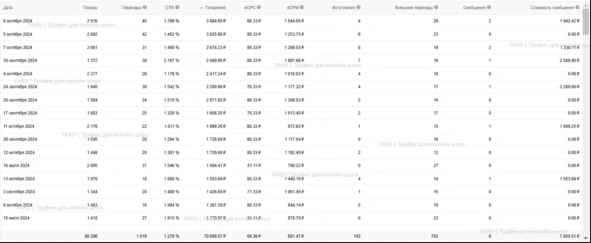 Работать мы начали с бюджета 50 тысяч рублей на тест. У школы было 5 действующих воронок, одну из которых мы взяли для этого теста.