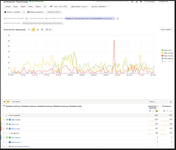Мы анализируем, например, в какое время суток люди чаще приходят на сайт, когда охотнее отправляют заявку на участие в мастер-классе. Смотрим на повторные визиты, время на сайте только с трафика из ВКонтакте и так далее.