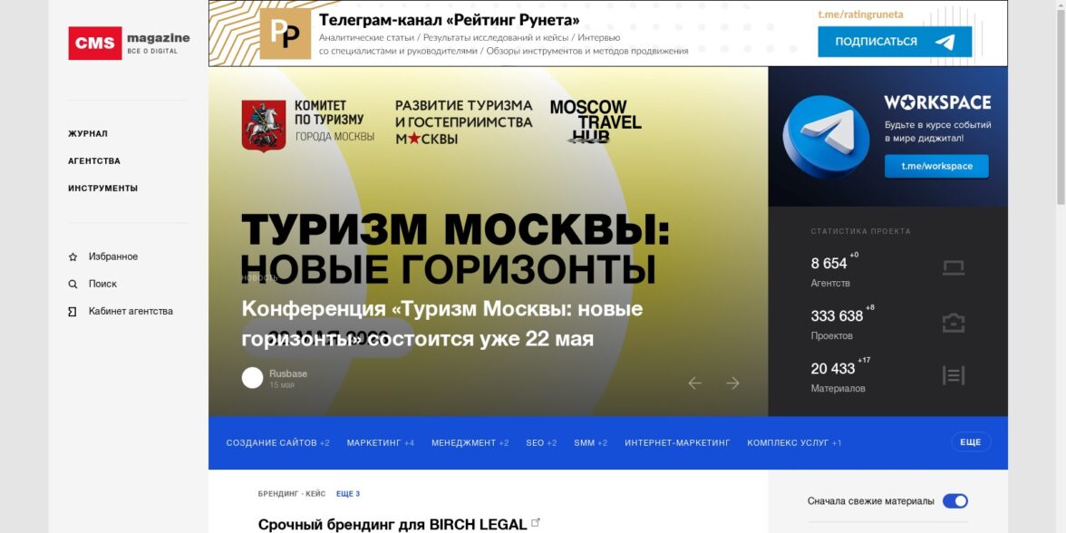 И еще на CMS Magazine есть раздел для публикации кейсов. Правда, здесь строгая модерации — ее проходят в среднем только 10% проектов.