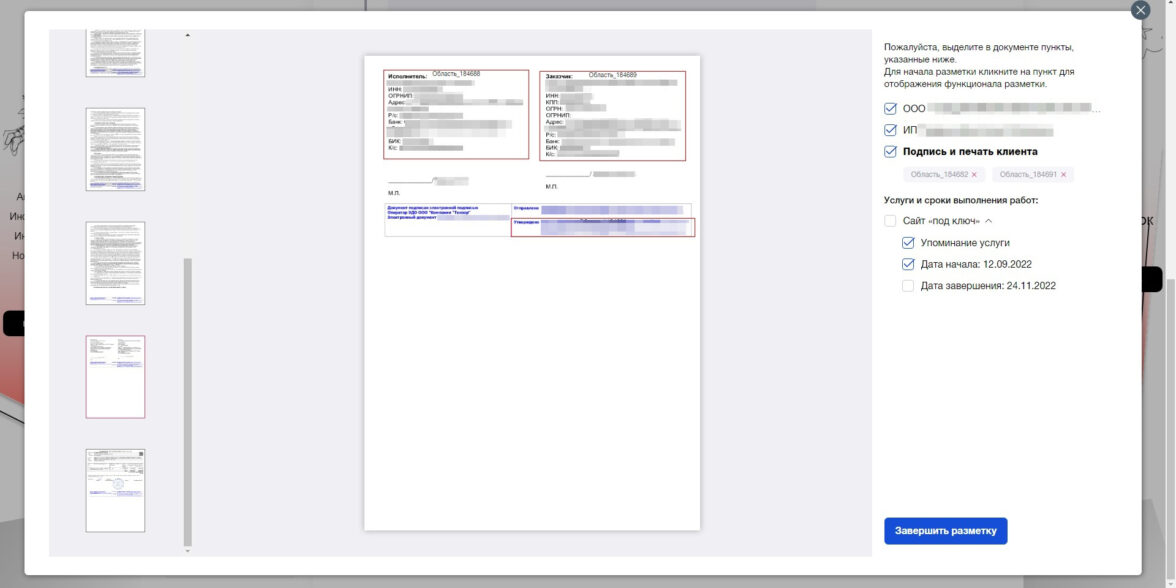 Все эти данные должны совпадать с указанными изначально в карточке проекта. Без разметки документы не отправятся на проверку.
