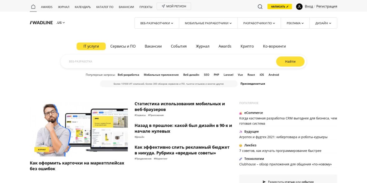 В этом году пришло понимание, что нашему digital-агентству нужно повышать свою видимость в интернете. Для решения этой задачи мы воспользовались в том числе максимально доступным способом — регистрацией на тематических площадках с каталогами IT-компаний.