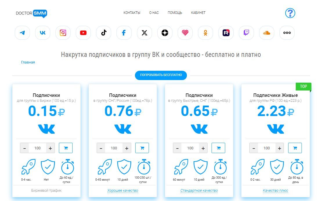 Doctorsmm — это сервис, специализирующийся на органическом росте социальных сетей. Он предлагает комплексное продвижение аккаунтов ВК за счет качественного продвижения и подписок от реальных пользователей. Такой подход минимизирует риск блокировки и улучшает вовлеченность аудитории.