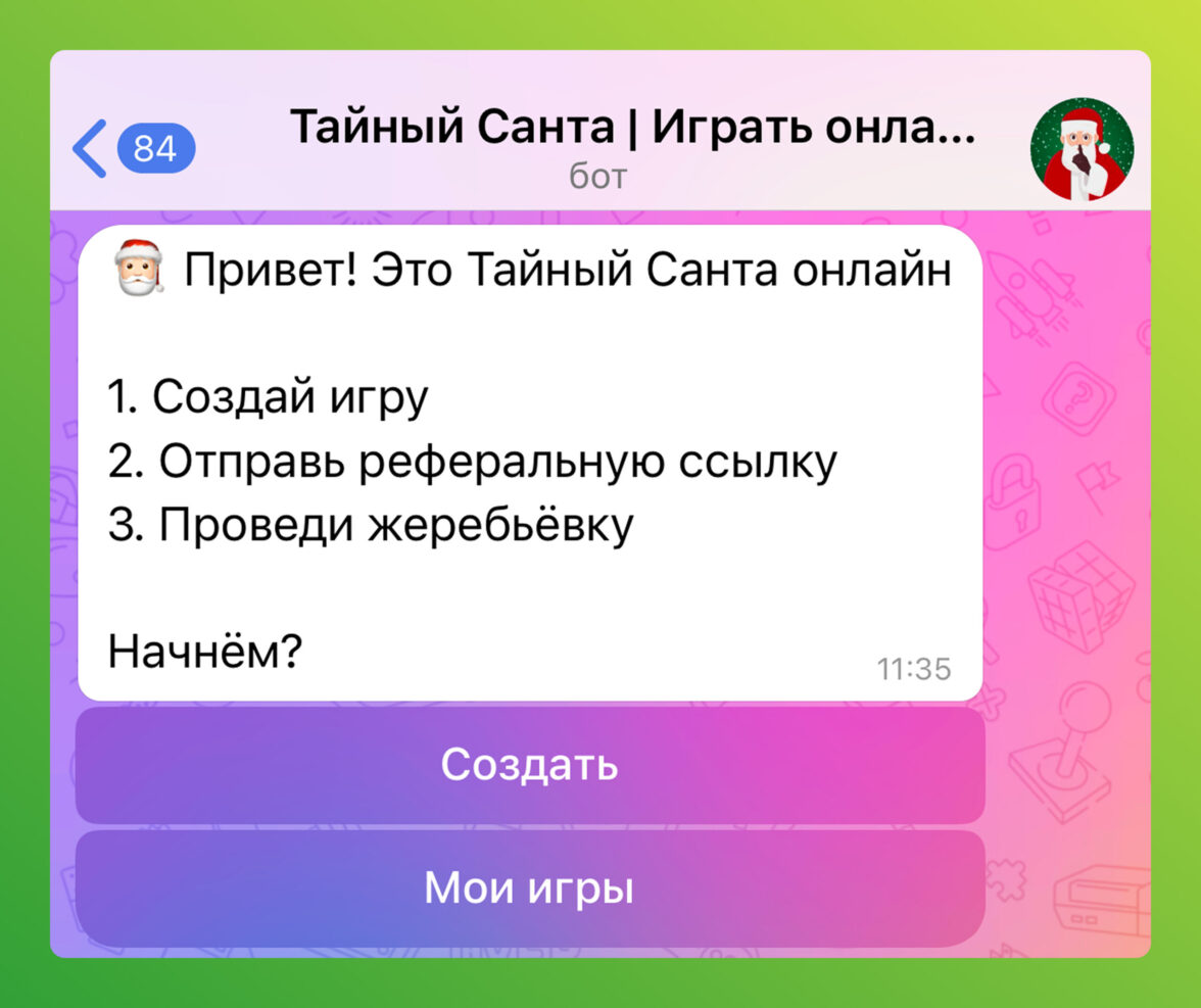 Играйте в Тайного Санту с нашим ботом и приходите за играми для бизнеса