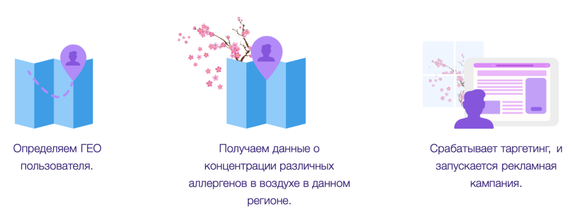 Основным преимуществом использования таргетингов на основе данных об окружающей среде является нативность и информативный посыл для пользователя. В начале информирование о текущем состоянии окружающей среды в его гео, а затем уже знакомство с продуктом или услугой. Коммуникация, построенная по такому сценарию, воспринимается пользователями более нативно.