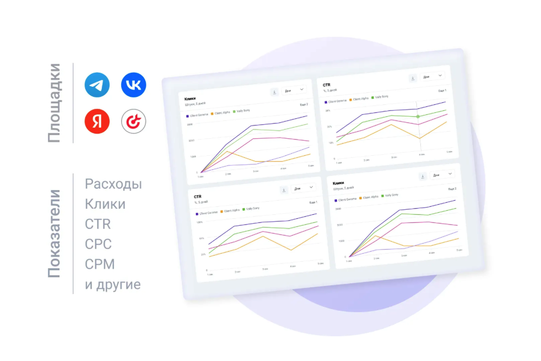 возможность получать данные, которые не предоставляет рекламная площадка (например, стоимость подписчика в Telegram Ads, которую без использования сервиса нужно будет рассчитывать самостоятельно).