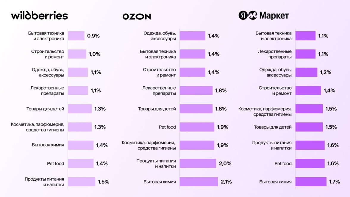 Через инструмент Commerce Analytic Tool (CAT) от Easy Commerce проанализировали карточки товаров 4,5 млн SKU — в среднем по 500 тысяч в каждой категории. В исследовании участвовали товары, которые продавались на маркетплейсах в первом полугодии 2025 года.