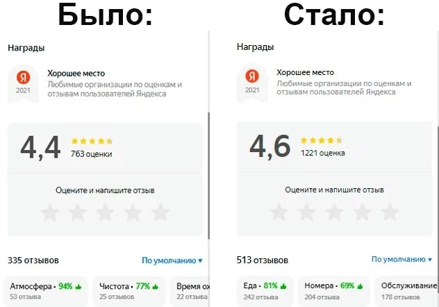 Поэтому желательно проработать карточку организации так, чтобы после ознакомления рука посетителя сама тянулась поставить высокую оценку: