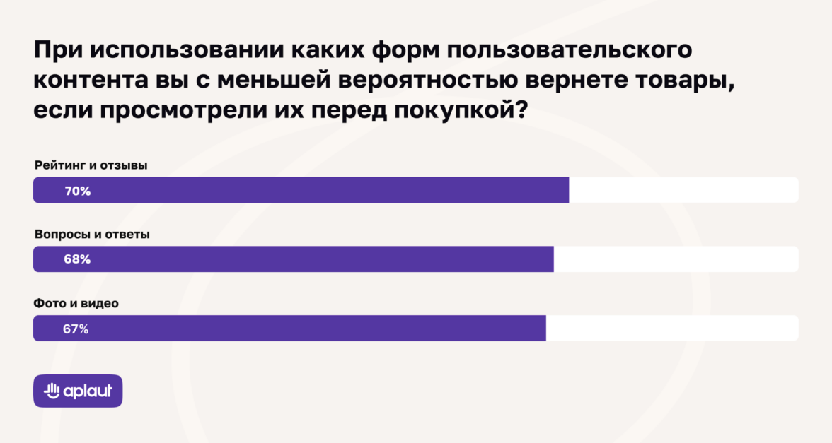 Большинство покупателей считают, что отзывы и фотографии от других пользователей позволяют им делать более удачные покупки и реже возвращать товары. Consumer Survey: Returns in Retail in 2021