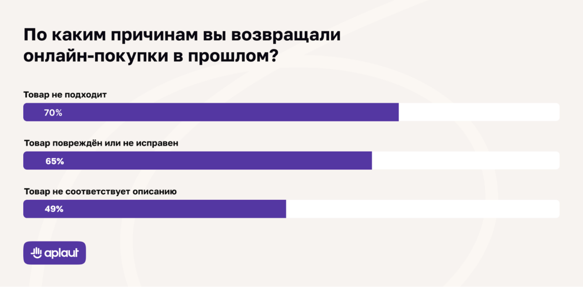 Кажется, что заменить отзывы могло бы описание товара в карточке. Но это не так. Около половины участников опроса указали, что оформили возврат покупки, поскольку реальный товар не соответствовал описанию.
