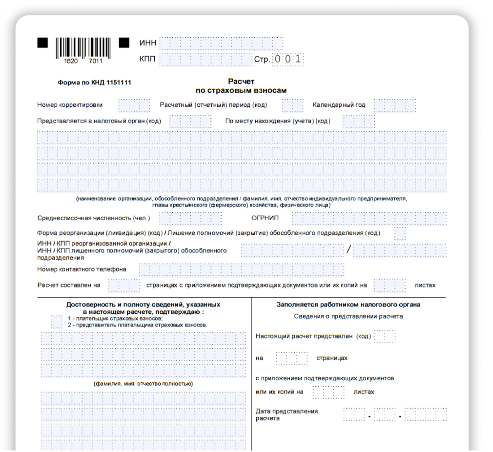 Пример формы расчета по страховым взносам, актуальной на 2025 год