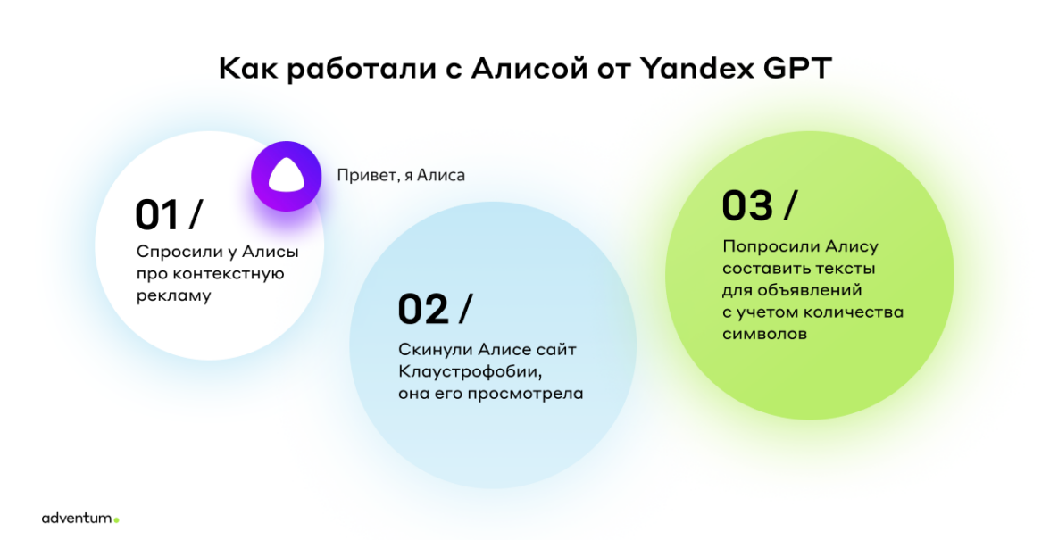 Сначала уточнили у Алисы, знакома ли она с требованиями к текстам для контекстной рекламы.
