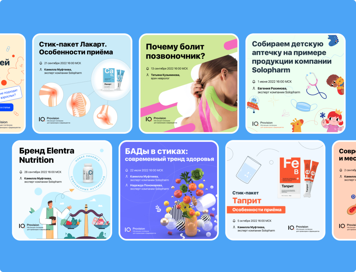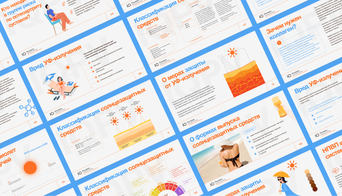 Помимо создания дизайна платформы, наша команда создала более 3 000 уникальных страниц брендированных презентаций для обучающих курсов платформы. Мы готовим иллюстрации и создаем с нуля впечатляющую инфографику, которая помогает усвоить материал гораздо быстрее. Благодаря обновленным презентациям, IQ Provision может похвастаться уникальной базой знаний.