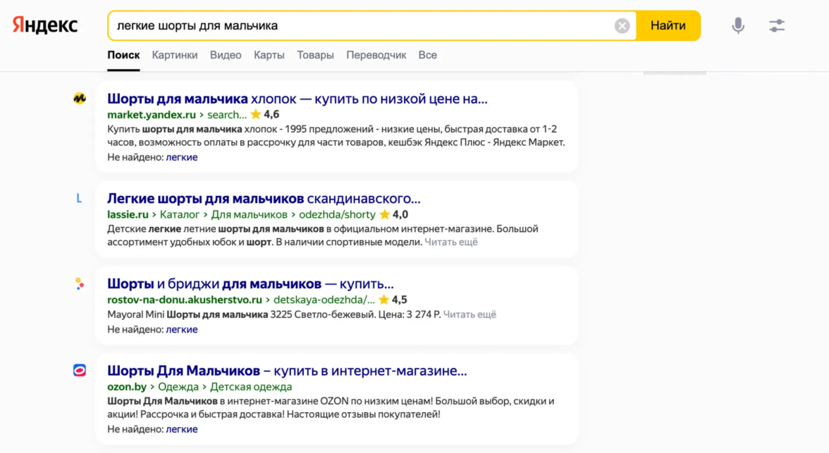 Тогда такого перечня работ было достаточно, чтобы стоять на первых позициях по широким запросам: «купить летние шорты», «платье черное», «толстовка недорого». Сейчас это кажется почти фантастикой — интернет-магазины едва попадают в ТОП-10 по небрендовым запросам. Но об этом ниже.