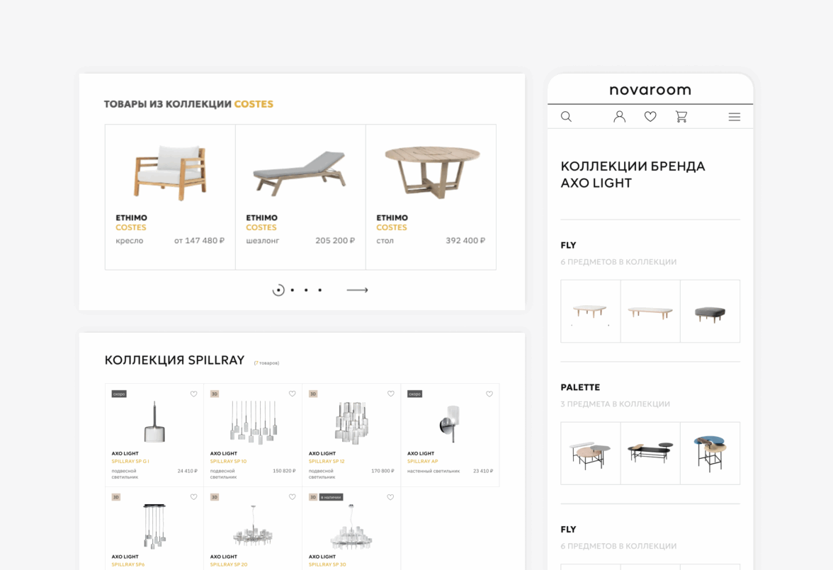 Novaroom — это не просто продажа мебели. Компания создает ценный контент, формируя у пользователей осознанный выбор, поэтому важное место на сайте занимают страницы брендов и дизайнеров, которые помогают найти вдохновение, глубже погрузиться в историю бренда, узнать о его философии и особенностях производства, изучить коллекции и увидеть полный ассортимент продукции бренда.