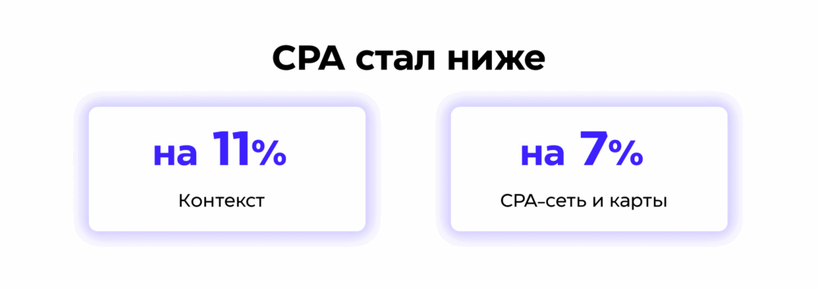 Снизили СРА контекста на 11%, СРА сетей и Карт — на 7%.