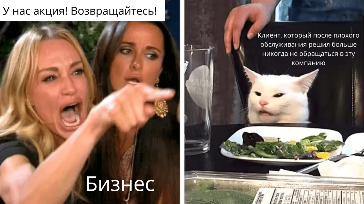 А это значит, что компании нужны постоянные клиенты. Недовольный покупатель вряд ли вернётся повторно, не говоря уже о том, чтобы стать завсегдатаем. И тогда все затраты по привлечению клиентов, все бессонные ночи маркетолога и дизайнера по согласованию макетов для рекламы, тысячи и тысячи рублей инвестиций — всё псу под хвост!