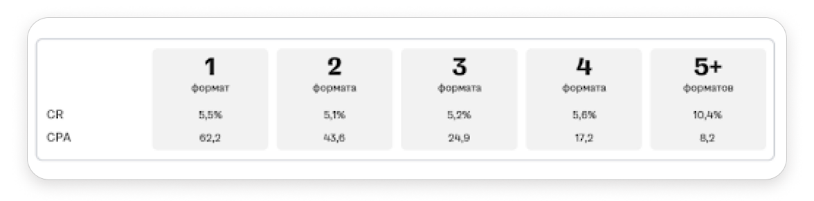 Если использовать более 5 форматов, СРА становится ниже на 67%