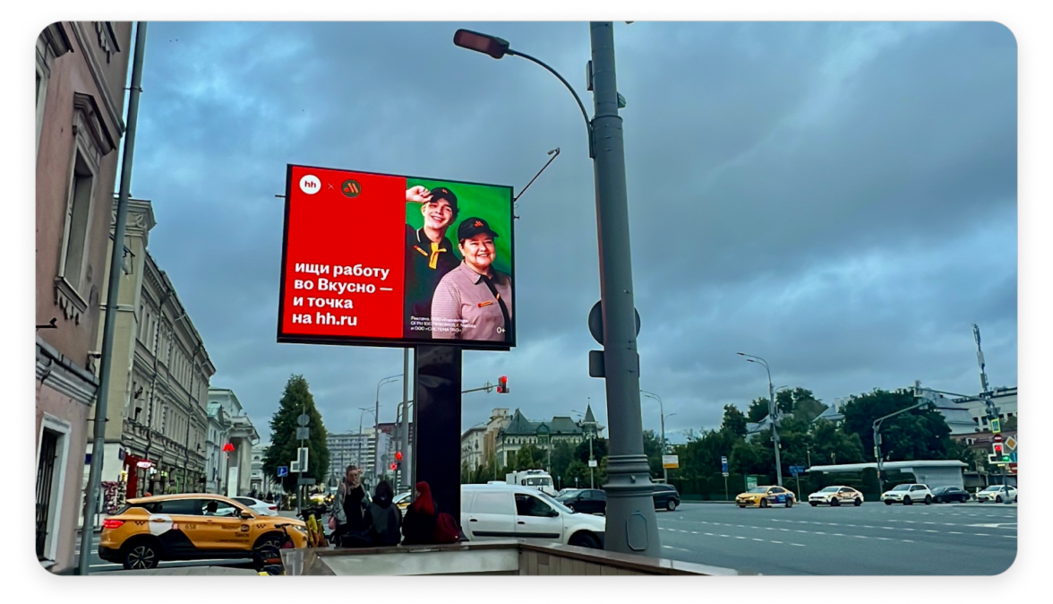 Команда hh.ru предложила «Вкусно — и точка» кобрендинг — совместную рекламную кампанию, в которой сила бренда hh.ru работает на трафик, узнаваемость и доверие к бизнесу партнёра.