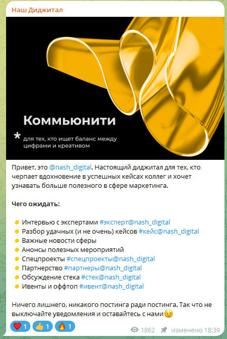 Форматы могут быть разными: экспертные и образовательные посты, дискуссии и опросы, которые становятся источником UGC. Хорошо работают реальные истории и кейсы, вызывающие эмоции. Мемы, новости и лёгкий, вирусный контент создают дружелюбный тон и помогают участникам чувствовать себя свободнее в общении.