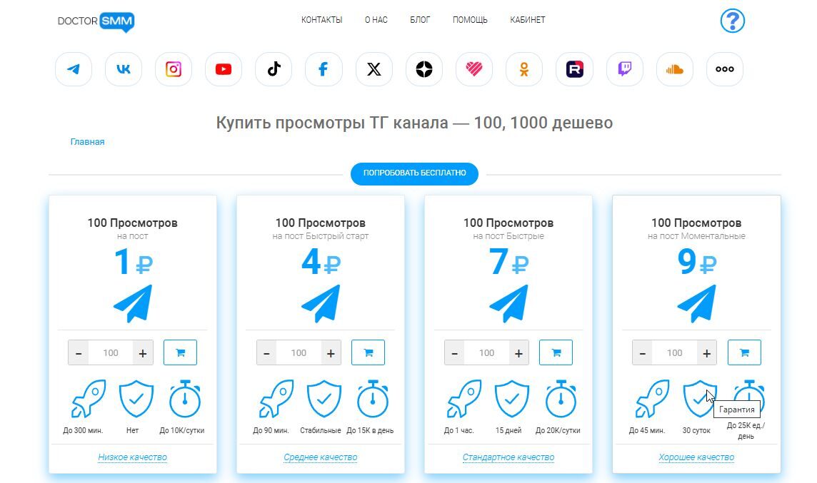 При выборе поставщика для заказа просмотров в Телеграм необходимо смотреть на гарантии, технические возможности и репутацию, а не только на цену. Ответ: смотрите на способность провайдера имитировать живую активность и его готовность дать гарантии. Например, на СММ сервисе Доктор смм вы можете купить просмотры в ТГК быстро, безопасно. Сервис имеет множество положительных отзывов и предоставляет гарантии.