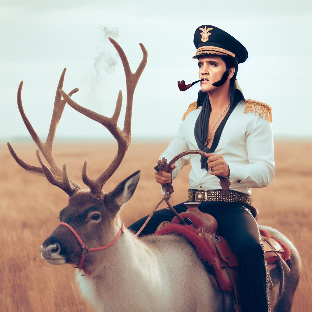 …и Элвис Пресли, который был отправлен кататься по прериям на северном олене в капитанской фуражке и с трубкой в зубах.