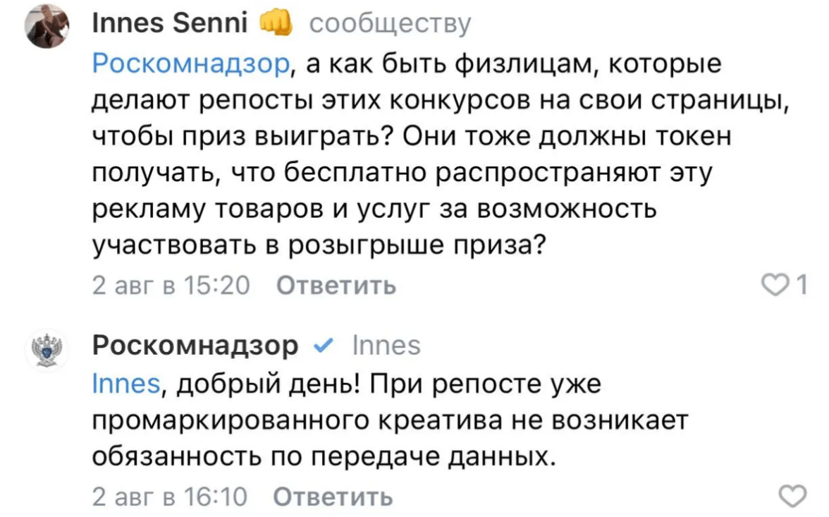 Этого будет достаточно и в данном случае любой пользователь может делать репост без проблем, дополнительно не маркируя данный пост со своей стороны. Здесь позиция Роскомнадзора, конечно, без ответа на официальном бланке с печатями ведомства, но как ориентир принимается к сведению для выводов и дальнейших действий:
