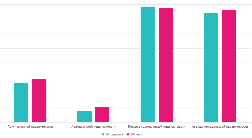 Наибольший рост показал сегмент аренды жилой недвижимости. Стоимость клика по покупке и аренде коммерческой недвижимости, можно сказать, осталась без изменений.