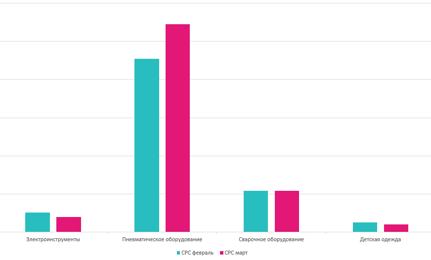— в кампаниях по пневматическому оборудованию стоимость клика выросла на 20%;