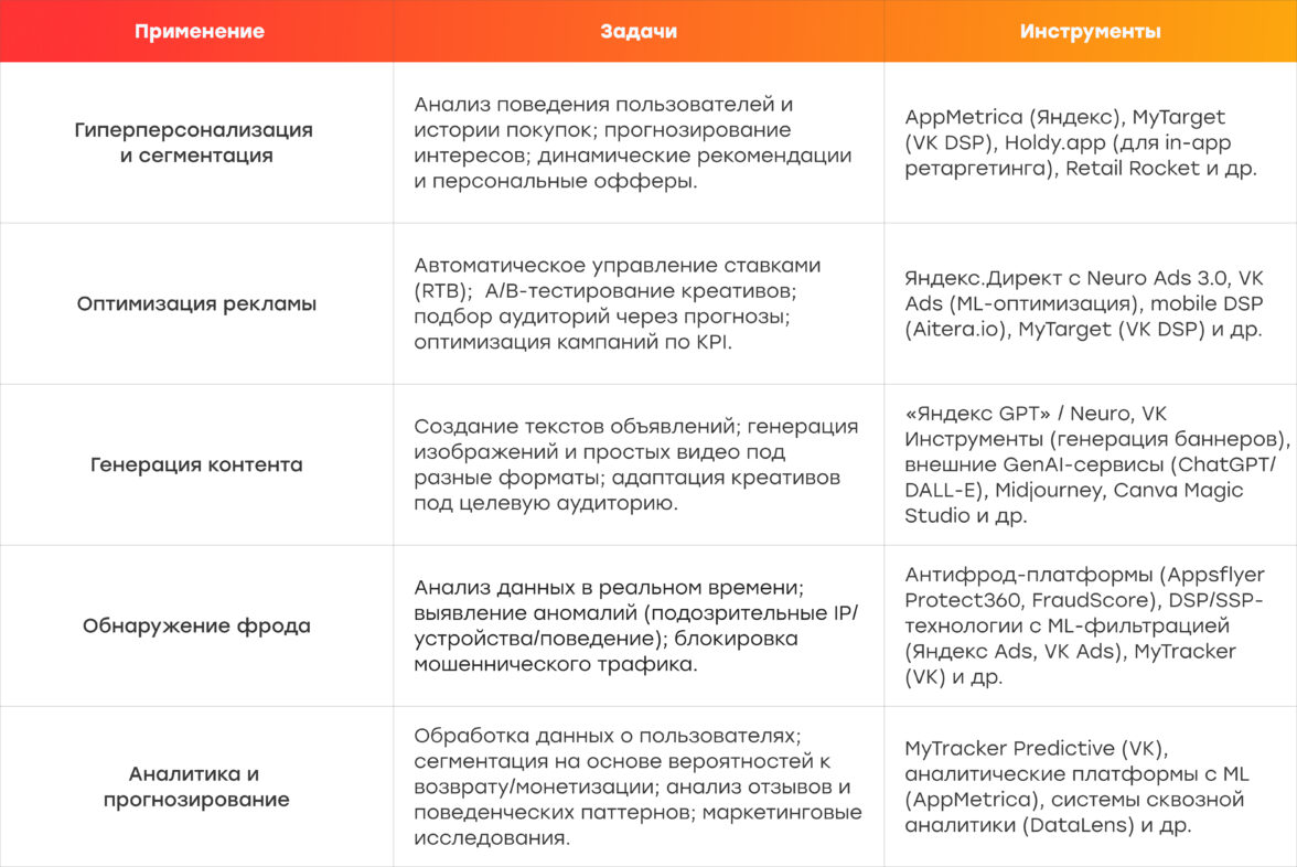 Рынок показывает, что агентствам и рекламодателям приходится адаптироваться к новым реалиям: нужно инвестировать больше ресурсов в ретеншен-стратегии (персонализация, программы лояльности, умный ремаркетинг), активно внедрять AI-инструменты на всех этапах (от генерации креативов до анализа эффективности), а также переходить на проверенные DSP и in-app-каналы вместо дешёвых CPA-сетей.
