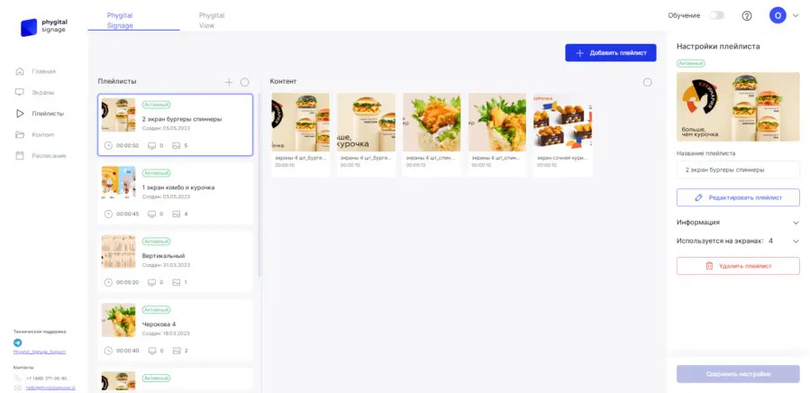 Создание и редактирование плейлистов на платформе Phygital Signage