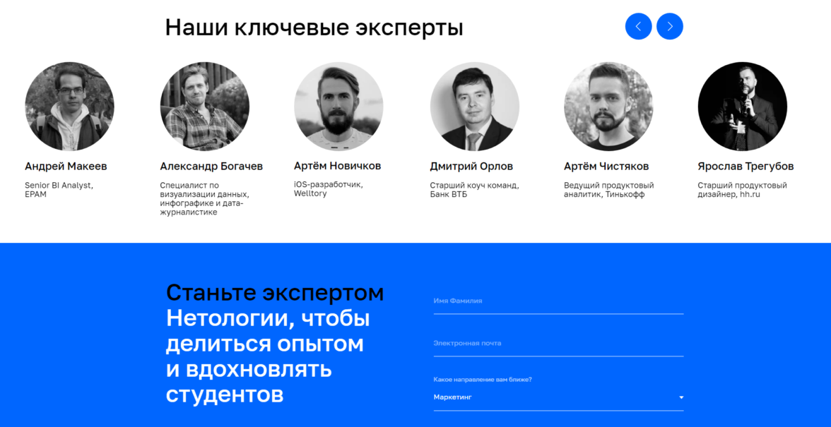 Проявление тренда: преподавание как вторая работа. Появляется все больше практиков, совмещающих преподавание с основной работой. Они приходят в образование чтобы получить полезные связи и расширить круг общения, развить свой личный бренд, нанять хороших младших специалистов из ряда выпускников или попрактиковаться в публичных выступлениях. Так, на курсе по iOS-разработке в «Нетологии» преподают разработчики из Skyeng, Yandex, Intel и других компаний.
