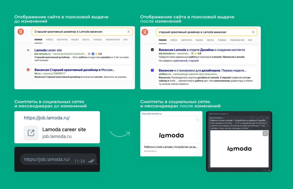 Пример модернизации карьерного сайта Lamoda — отображение в выдаче и сниппеты
