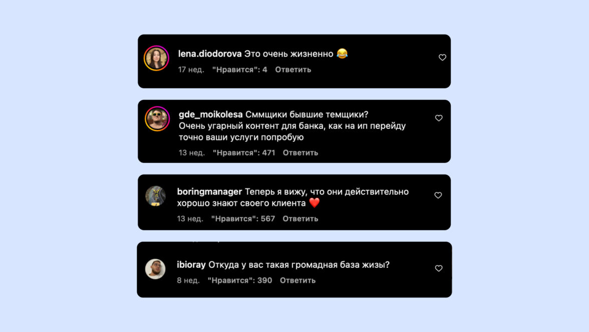 Поэтому главное, что «Модульбанк» получил от смены стратегии — это рост известности и лояльности аудитории. Люди смотрят жизненные мемы — понимают, что банк с ними на одной волне, — легче принимают решение об открытии счёта.