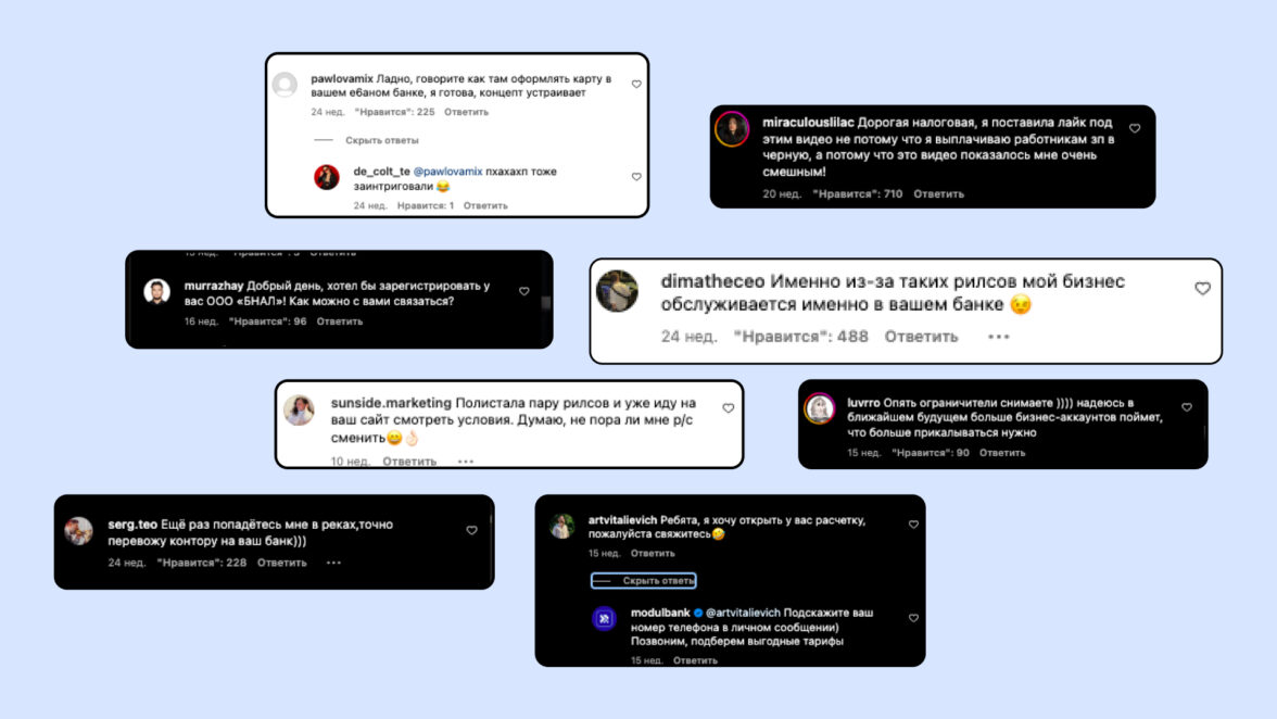 В феврале 2024 года «Модульбанк» изменил SMM-стратегию: в аккаунте появился герой, который стал шутить о бизнесе, налогах, найме — обо всём, что близко потенциальным клиентам банка.