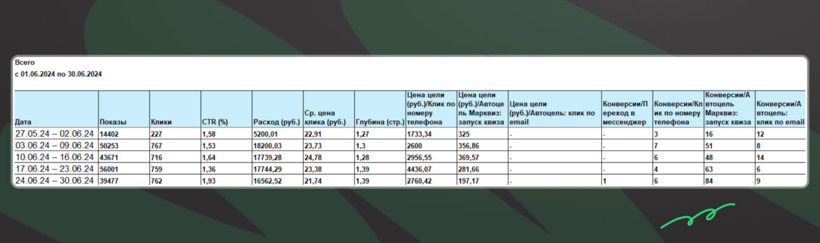 По отчёту мы видим расходы, клики на мессенджеры, марквиз или номер телефона, но эти данные ведут в пустоту