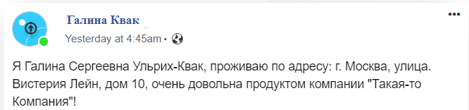 Не стоит выкладывать отзыв, где клиент разглашает свои персональные данные
